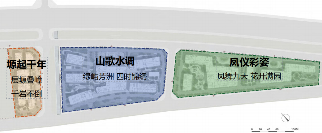 規(guī)劃設(shè)計(jì)主要?jiǎng)澐譃槲鞯貕K、中地塊、東地塊三個(gè)地塊,總建筑面積為 159430.83 ㎡。
